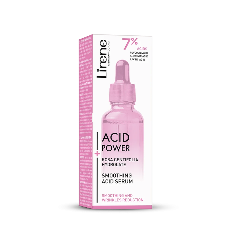 Sérum lissant enrichi en complexe d’acides glycolique, succinique et lactique (7%) et 20% d’hydrolat de rose centifolia. Il stimule le renouvellement cellulaire, hydrate intensément et protège la peau contre le vieillissement prématuré grâce à ses propriétés antioxydantes.