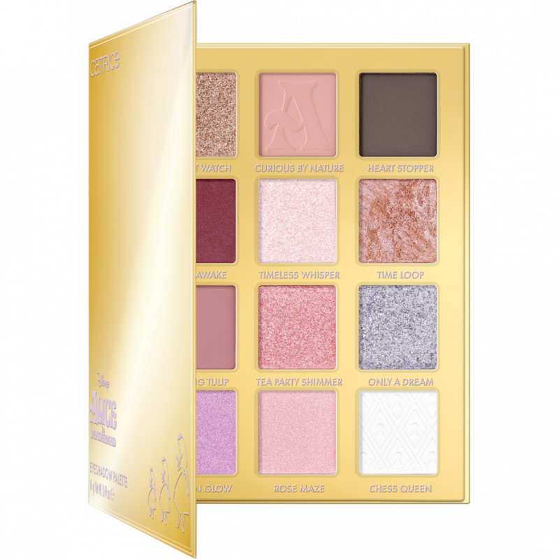 Laissez parler votre créativité grâce à la palette de fards à paupières Catrice inspired by Disney Alice in Wonderland C02 In A World Of My Own Cette sublime collection comprend 12 teintes hautement pigmentées : des tons neutres mats ou intenses et des nuances argentées, or rose et or. Ces fards à paupières se superposent et s’estompent facilement. Pour une touche de couleur discrète ou un maquillage plus spectaculaire. Le film miroir sur le packaging crée un reflet ludique et légèrement déformé.