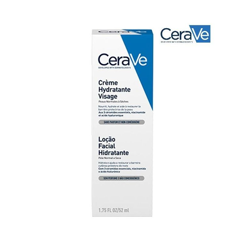 Pour les peaux normales à sèches , et adaptée au visage et au cou , la Crème Hydratante Visage CeraVe, développée en collaboration avec des dermatologues, hydrate quotidiennement et contribue à maintenir la barrière protectrice de la peau. Sa texture ultra-légère et non grasse, enrichie en trois céramides essentiels et en acide hyaluronique, hydrate la peau tout au long de la journée dès la première application. Appliquer aussi souvent que nécessaire. Éviter le contour des yeux. En cas de contact avec les yeux, rincer immédiatement et abondamment.