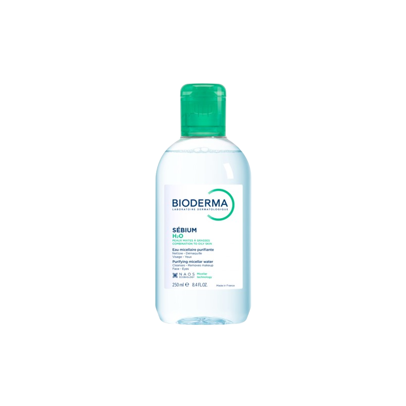 Bioderma Sébium H2O Solution Micellaire 250 ml est une solution micellaire qui nettoie et purifie au quotidien, grâce à un procédé original de micro-émulsion des salissures, les peaux jeunes, les peaux mixtes ou grasses et les peaux grasses à problèmes. Formulé à partir d'agents non irritants et sébo-purifiants, Sébium H2O Bioderma assainit l'épiderme en douceur et normalise l'excès de sébum. Non moussant, sans alcool, sans rinçage.