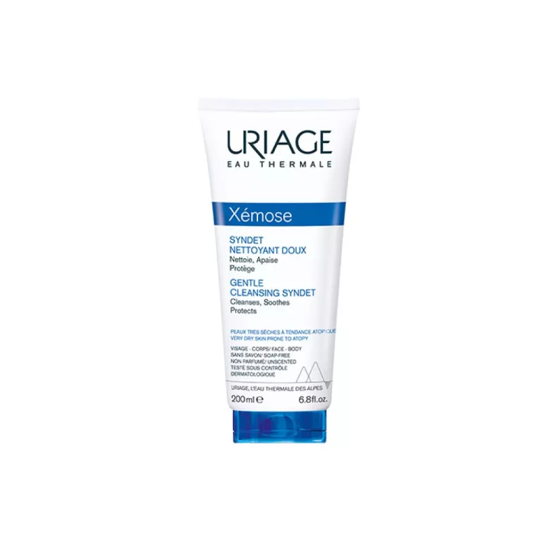 Uriage Xémose Syndet Nettoyant Doux 200 ml est un gel-crème haute tolérance nettoyant sans savon, qui apaise et protège les peaux très sèches à tendance atopique du visage et du corps. Le Cerasterol-2F protège et aide à restaurer la barrière cutanée des bébés, enfants, adultes.