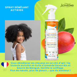 Avec le Spray Démêlant, vous démêlerez les cheveux de votre enfant en un clin d'il! Sa formule enrichie en huile d'amande douce bio et en beurre de mangue, facilite le coiffage et laisse les cheveux doux, hydratés et nourris.